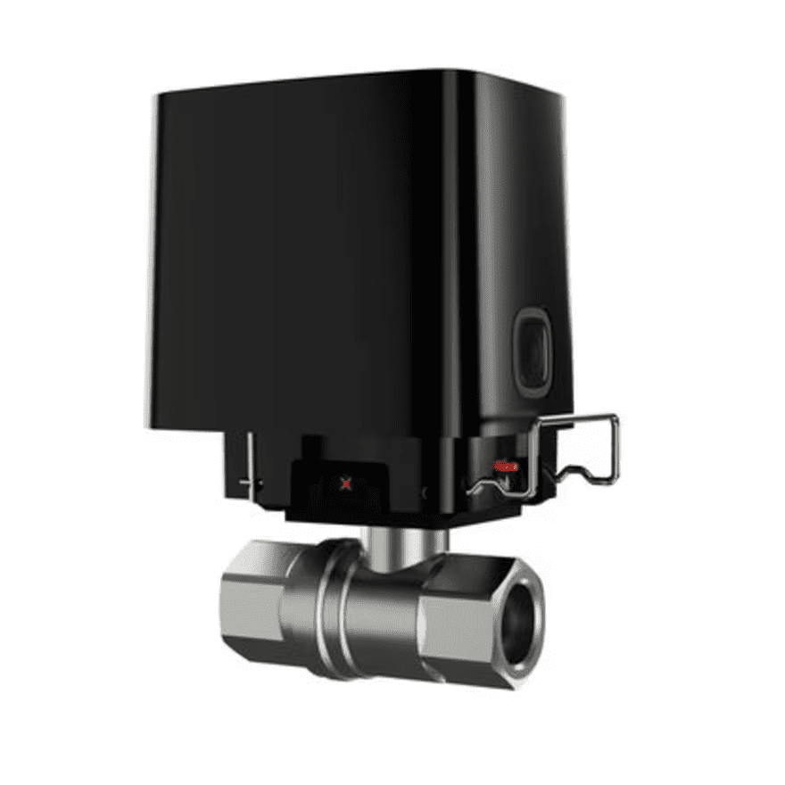 Ventil za vodo (3/4″) z daljinskim krmiljenjem (ročno, preko aplikacije ali s scenariji). Uporaben za toplo ali hladno vodo. Dimenzije 104 mm x 140 mm x 70 mm. Črne barve