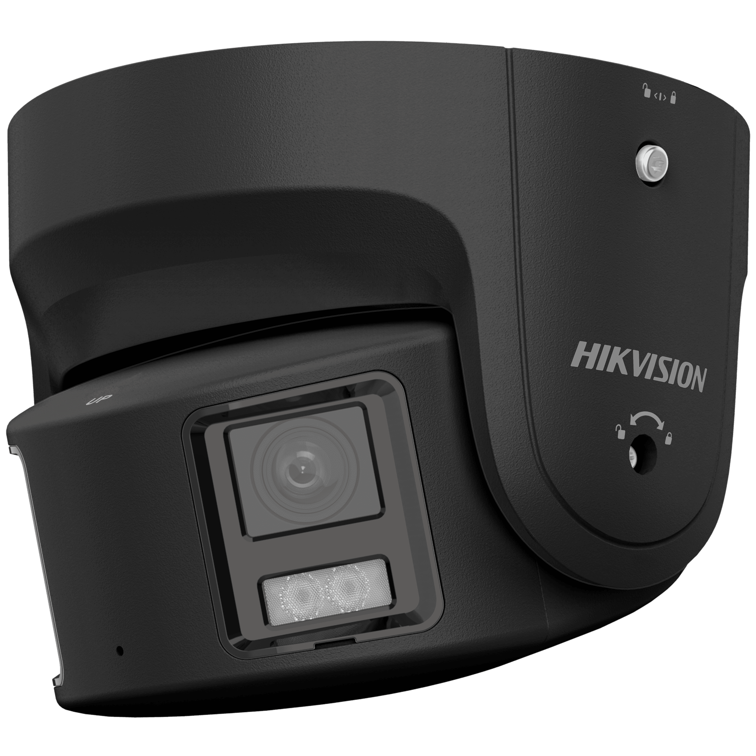 Kamera DS-2CD2387G2P-LSU/SL(4mm)(C)/BLACK, ColorVu panoramic, vgrajen mikrofon (-U), aktivni stroboskop in audio alarm (SL), IP turret (dual 4 mm leči), 8 Mpix panoramic (5120×1440), 2 × 1/1.8” Progressive CMOS, video kodeki H.265+, H.265, H.264+, H.264, fiksni 4 mm leči, IR cut, minimalna svetlobna občutljivost 0.0005 Lux @ F1.0 (AGC ON), 0 Lux z osvetlitvijo, domet do 40 m, WDR 130 dB, micro-SD do 512 GB, 12 V DC, PoE, IP67, opcija junction box DS-1471ZJ-155 (pendant) ali DS-1473ZJ-155 (wall).